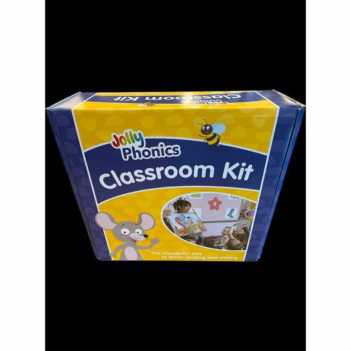 Jolly Phonics Classroom Kit (NEW) – contains a comprehensive set of classroom resources for teachers to use with their class. It provides resources for teaching children to read and write from learning the letter sounds to alternative spellings and tricky words and also includes decodable reading books.All the items are continued in a bright case for neat and easy storage. Items contained in the kit:* The Phonics Handbook*Jolly Phonics DVD* Jolly Phonics Word Book *Jolly Phonics Wall Frieze* Jolly Phonics Letter Sound Strips* Finger Phonics Big Books 1-7 *Jolly Phonics Cards* Jolly Phonics Alternative Spelling and Alphabet Posters*Jolly Phonics Tricky Word Wall Flowers* Jolly Phonics Puppets* Jolly Phonics Tricky Word Hat* Finger Phonics books 1-7* Jolly Phonics Resources CD*Jolly Phonics Word Bank *Little Word Books (14 titles) * Jolly Songs (A4 book and CD)* Read & See Pack 1 (all 12 titles)* Read & See Pack 2 (all 12 titles) *Jolly Phonics Readers Level 0 Complete Set (all 21 titles) *Jolly Readers,Level 1 Complete Set (all 18 titles)*Jolly Readers,Level 2 Complete Set (all 18 titles)*Jolly Readers,Level 3 Complete Set (all 18 titles) *Jolly Readers,Level 4 Complete Set (all 18 titles)